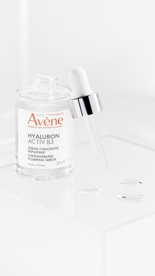 Con la edad todo se acelera. Las células envejecidas se propagan y la piel funciona en cámara lenta. Los laboratorios dermatológicos Avène crearon el sérum Hyaluron Activ B3, altamente concentrado en ácido hialurónico puro (1,5 %: de alto y bajo peso molecular) y niacinamida (6 %) para actuar sobre la causa del envejecimiento y prolongar la vida de las células*. Gracias a su fórmula minimalista que contiene sólo 8 ingredientes, este sérum proporciona un efecto reafirmante tras 15 días de uso. Al cabo de 15 días, la piel está más densa, más firme y más elástica**: la verdadera eficiencia en su forma más pura. Probado en pieles sensibles, este producto sin perfume es adecuado para todas las zonas del rostro, incluso el contorno de ojos.