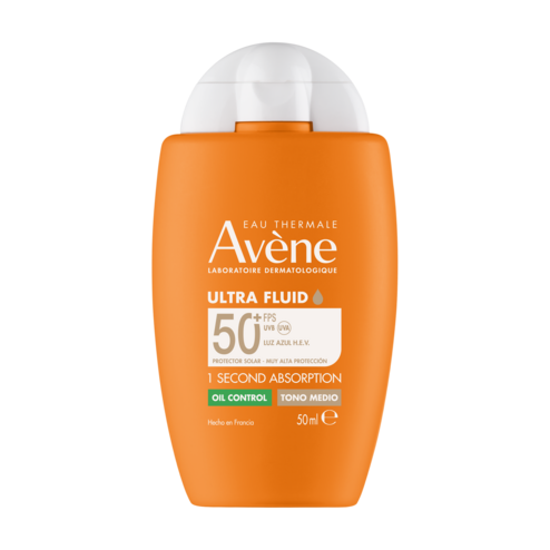 Ultra Fluid OIL CONTROL MEDIO SPF50+ ofrece una protección diaria muy alta frente a los rayos UVB, UVA y la luz azul HEV, ayudando a prevenir el fotoenvejecimiento.